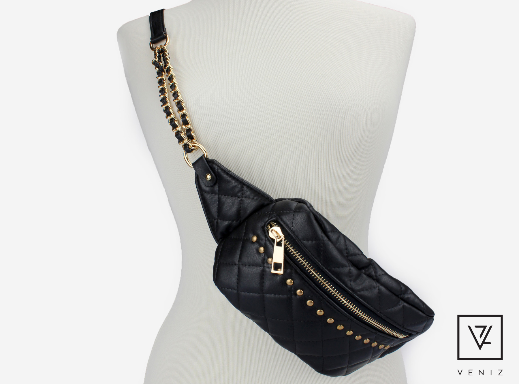 Säädettävän vyönauhan ansiosta laukkua voi käyttää crossbody mallina tai lanteilla vyön tapaan.